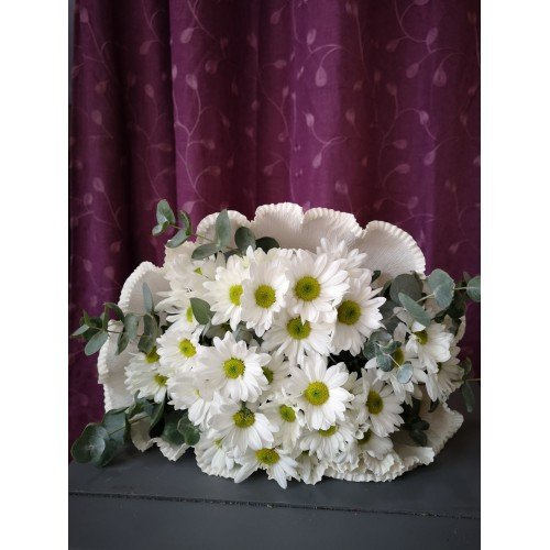 Un alegre ramo de margaritas frescas en una variedad de colores, que representa la inocencia y la alegría. Este ramo es ideal para regalar en ocasiones especiales o simplemente para alegrar el día de alguien con su belleza natural y vibrante.